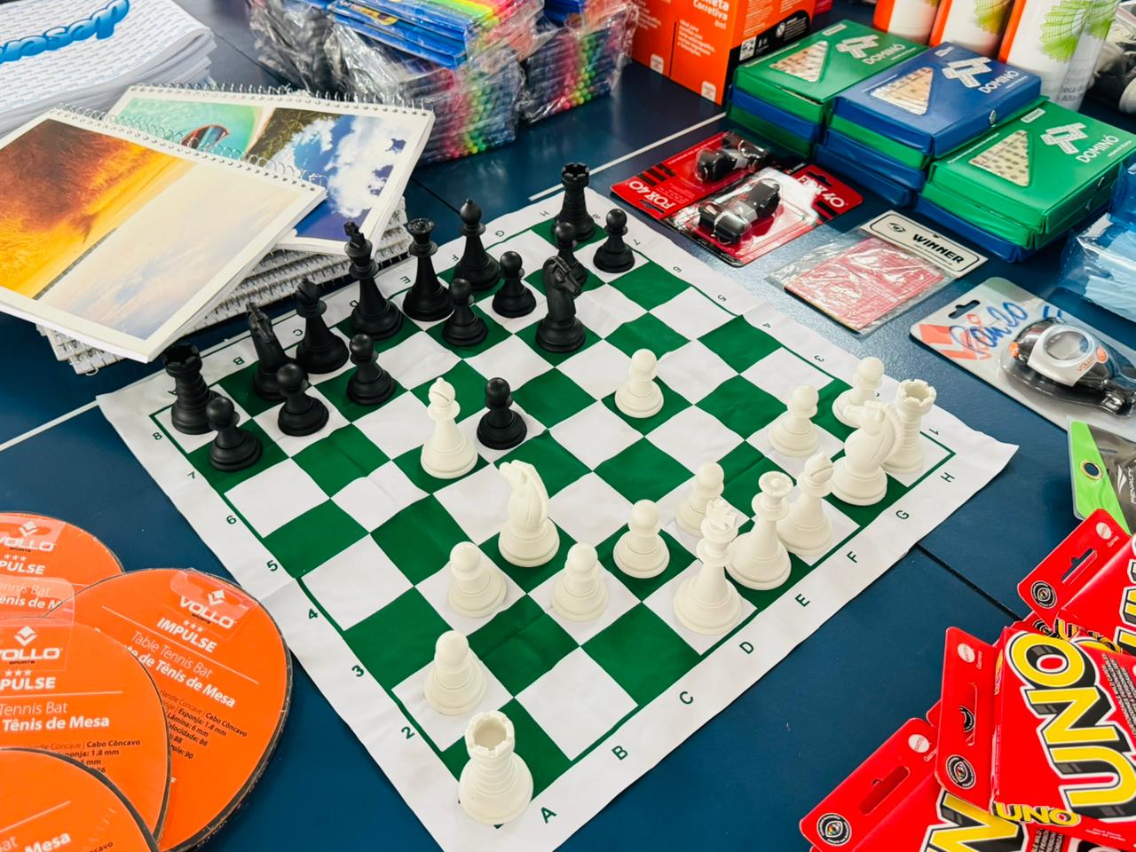 A lista também inclui materiais diferenciados que ampliam as possibilidades pedagógicas e esportivas nas escolas, como kit de arco e flecha, jogos de xadrez profissional, jogos de boliche, petecas, escada de treinamento, disco de equilíbrio, mini traves de gol e kits de atividades físicas.